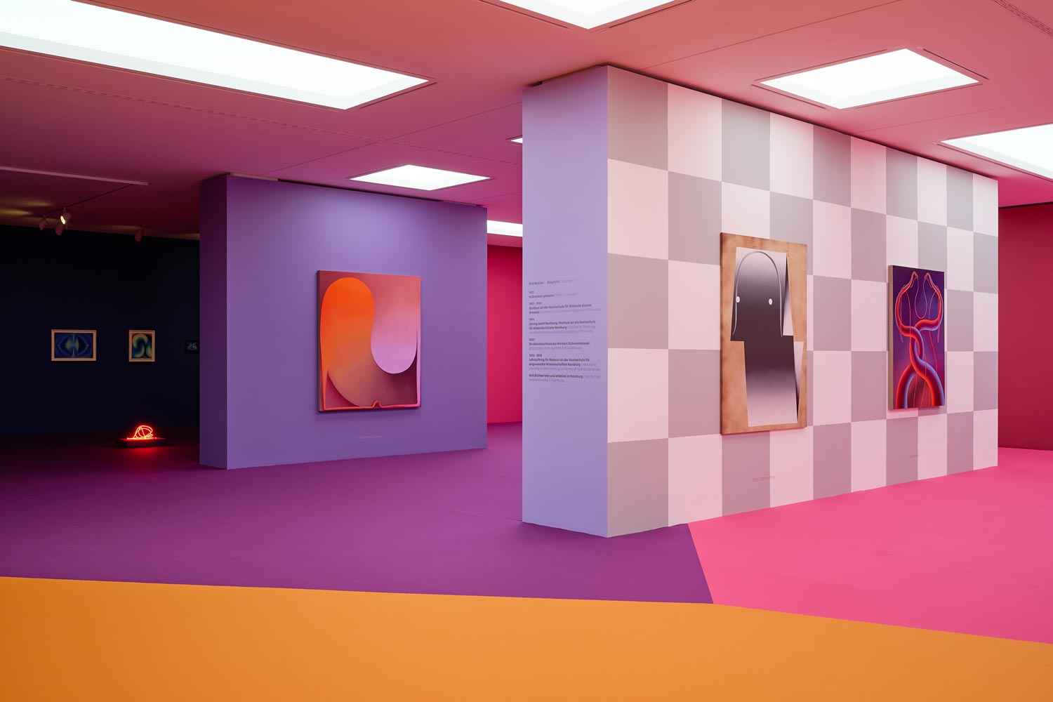 Richter transforms the exhibition space into a large-scale, immersive installation. Color, material, and surface extend across walls, floor, and objects, dissolving the boundaries between individual works and the surrounding architecture. The space becomes physically present and perceptible, inviting visitors to move through it rather than observe it from a distance.