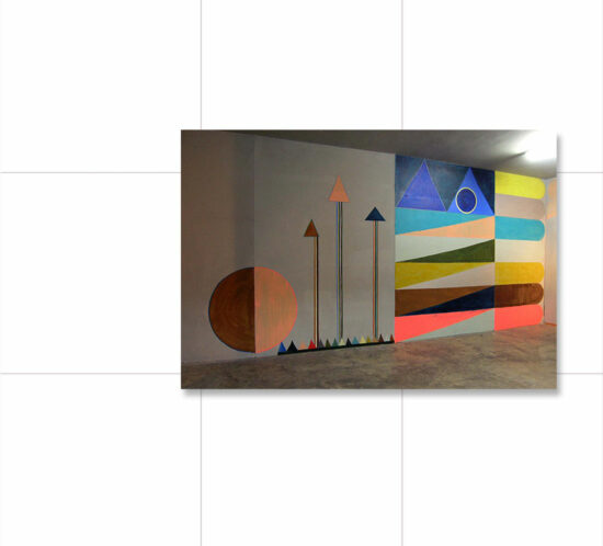 Frantic Silence, Grazing Dog 2011 Installation at Elektrohaus, Hamburg Dispersions on wall ca. 500 x 270cm Oil on linen | Dispersion on wall | Concrete,